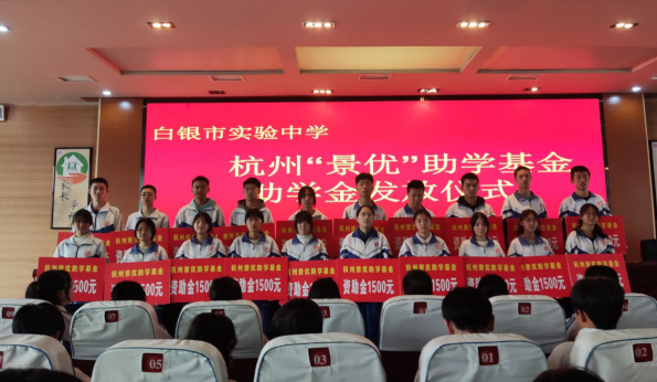 4月1日下午,杭州景優(yōu)化工有限公司春季“景優(yōu)助學(xué)基金”發(fā)放儀式在甘肅省白銀市實(shí)驗(yàn)中學(xué)舉行,第一期有40名學(xué)生受到資助。